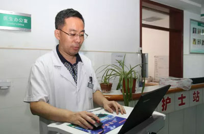 在呼吸內(nèi)二科,科主任韓先章已經(jīng)查完房在寫病歷。說起移動(dòng)查房,韓先章說:用移動(dòng)查房車,各種檢查一目了然,比翻病歷方便多了;看完病人立即下醫(yī)囑,又快又不會(huì)遺漏,我每次查房至少可以節(jié)約一個(gè)小時(shí)。而且無紙化辦公,節(jié)約了大量紙張,真是一舉多得。